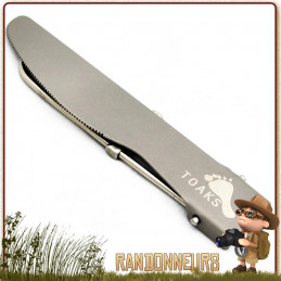 Couteau Titane Pliable TOAKS - Le couteau pliant de Toaks se compose d'une lame dentée en titane ultra légère repliable sur manche filaire, idéal pour le bivouac léger et la randonnée ultra light, ce couteau est aussi compact que léger et se glisse dans une poche ou une popote titane Toaks