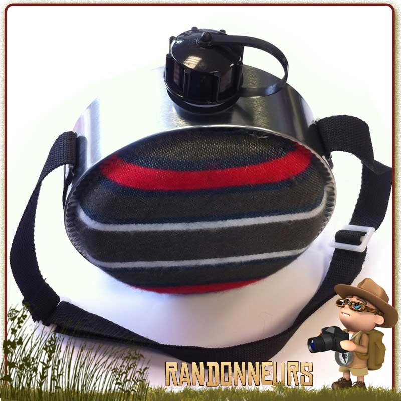 Gourde 1.9 Litres avec bandoulière réglable et garantissant un minimum d'isolation grâce à son feutre que vous pouvez tremper dans l'eau pour conserver vos boissons au frais.