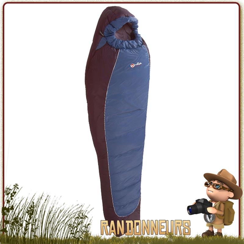 Sac de couchage EXPLORER Wilsa, résistant et robuste est parfaitement adapté aux conditions les plus courantes en bivouac en cours de trek estival. Un très bon compromis au rapport poids et température confort à -3°C