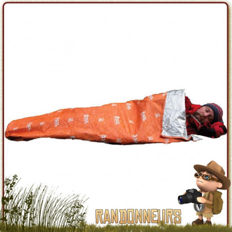 Bivi Bag ESCAPE Lite Sac Couchage de survie est une couverture de survie au format de sac de couchage ou sursac de couchage utilisée dans les situations d'urgences afin de réduire les pertes de chaleur et les possibilités d'hypothermie. Un bivi bag de survie est aussi utilisée pour ses propriétés imperméables contre l'humidité ou le vent, tant par les secouristes que pour divers usages détournés, tel un tapis de sol en bivouac.